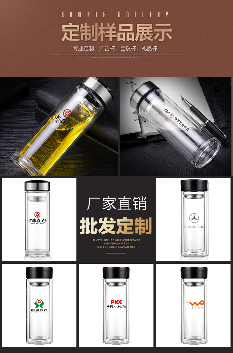 蘭州大學(xué)圖書(shū)館定制雙層玻璃杯商務(wù)禮品杯子