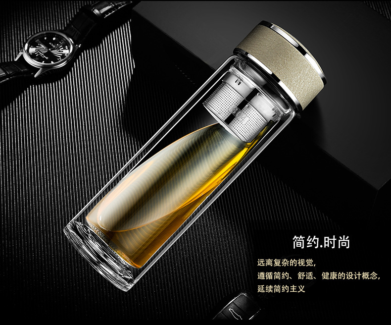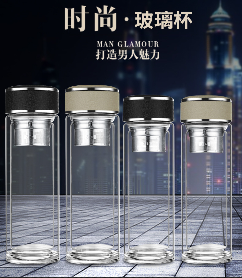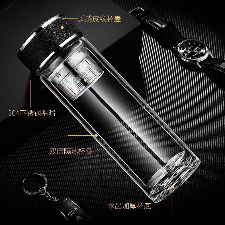廠家直銷新款創意高端商務雙層玻璃杯帶濾網辦公水杯定制