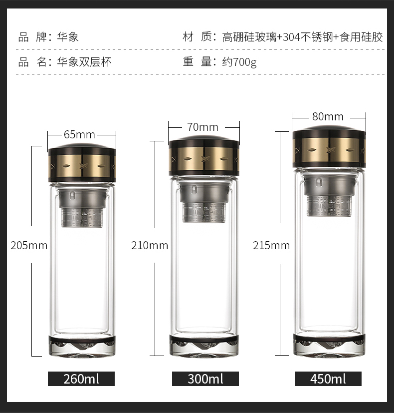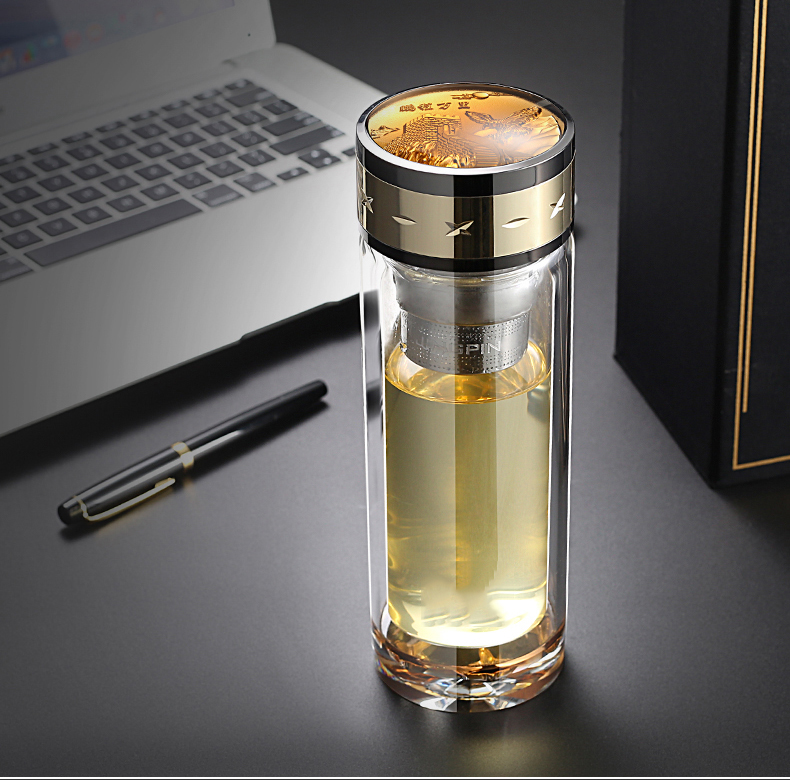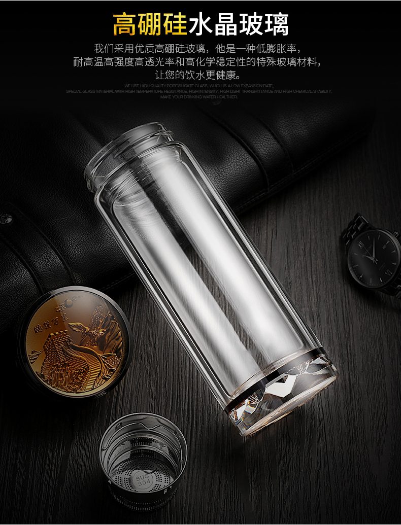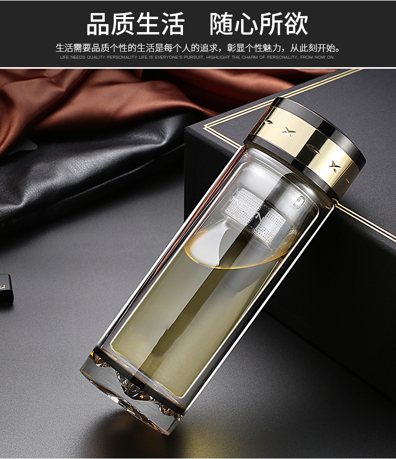 水晶雙層玻璃杯商務辦公便攜泡茶男女泡茶大容量LOGO