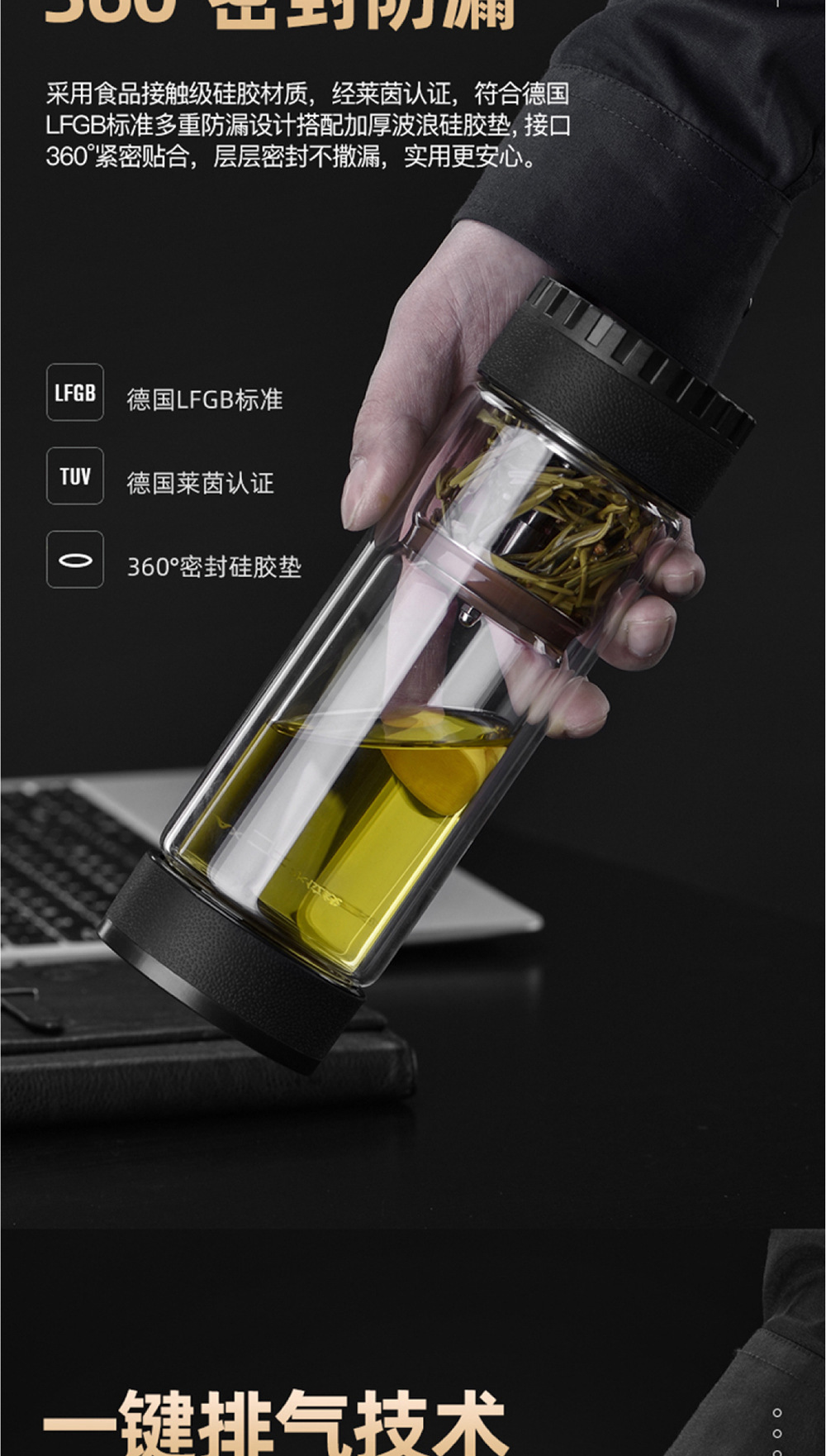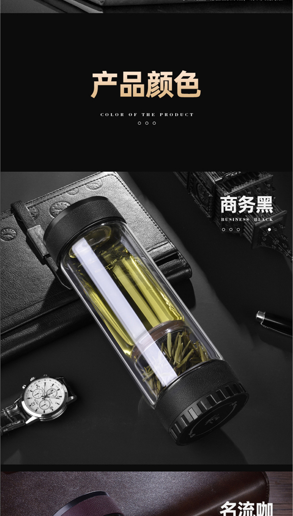 茶水分離泡茶師商務雙層玻璃杯定制禮品杯旋轉開關茶杯印logo水杯
