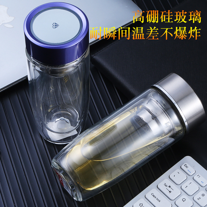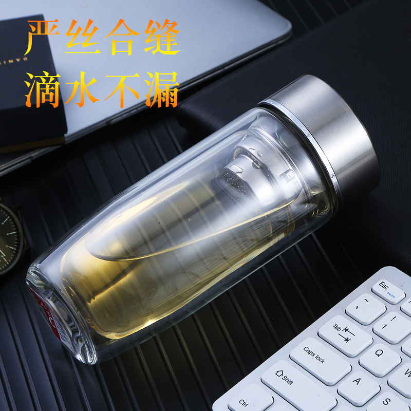 雙層玻璃杯子鵝蛋杯茶杯批發辦公杯會議室泡茶杯廣告禮品玻璃水杯