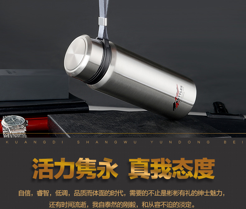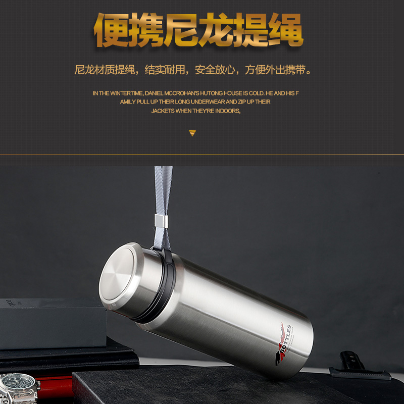 真空保溫杯創意禮高檔不銹鋼子彈頭戶外隨行吊帶定制水壺杯子