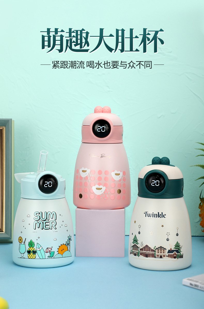 316不銹鋼智能顯溫學生兒童保溫杯現貨新品大肚杯子