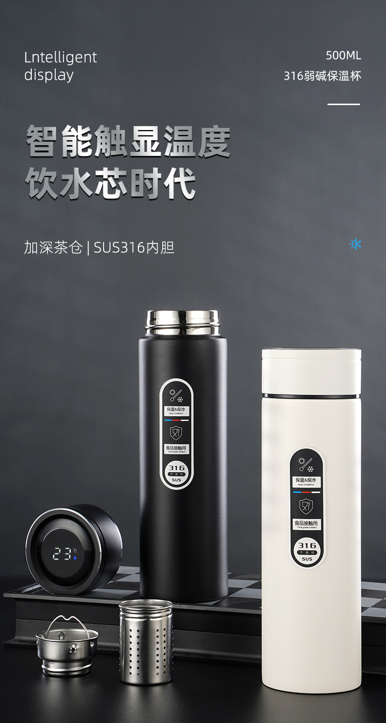 316不銹鋼噴塑智能保溫杯男女士辦公水杯泡茶杯車載商務(wù)禮品