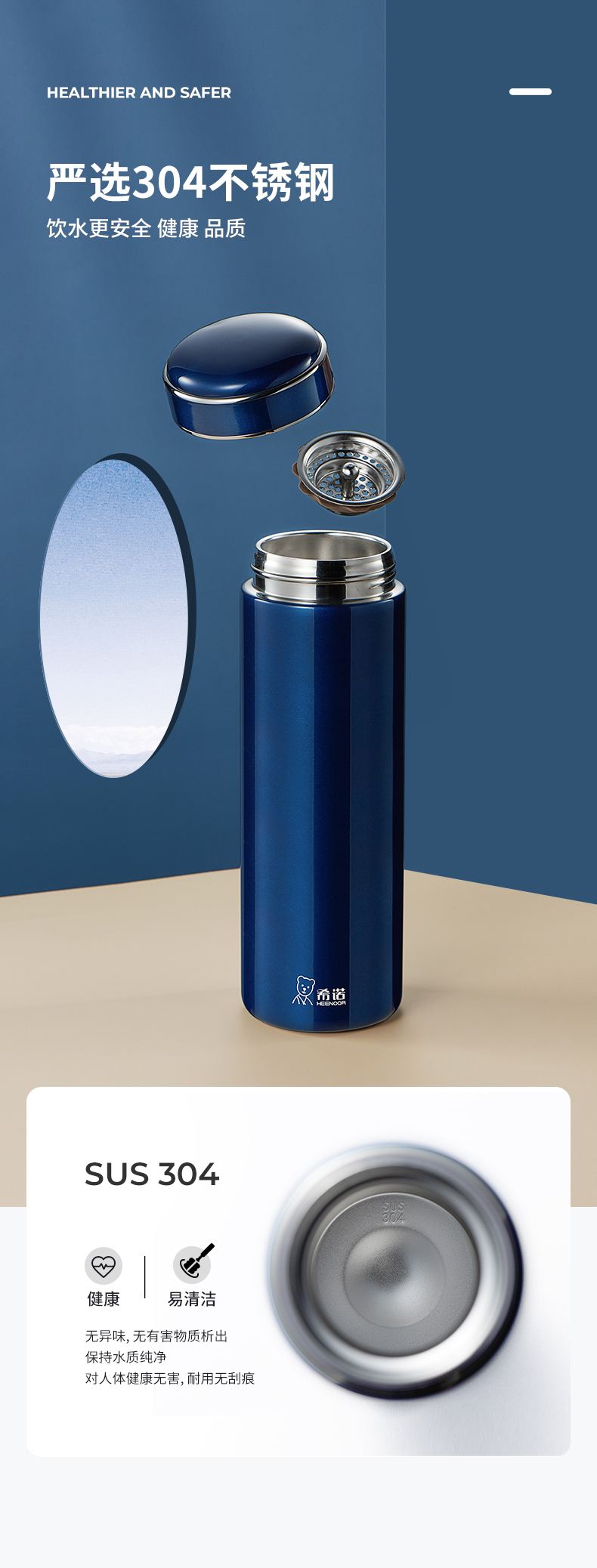 希諾保溫杯商務(wù)濾網(wǎng)泡茶杯子男女士便攜定制商務(wù)304不銹鋼水杯
