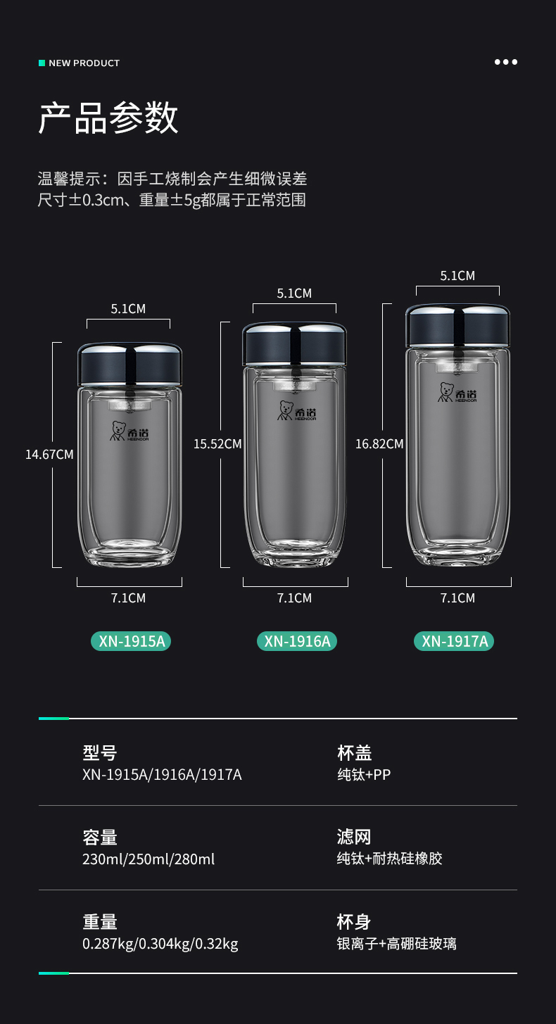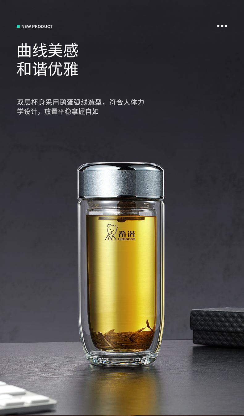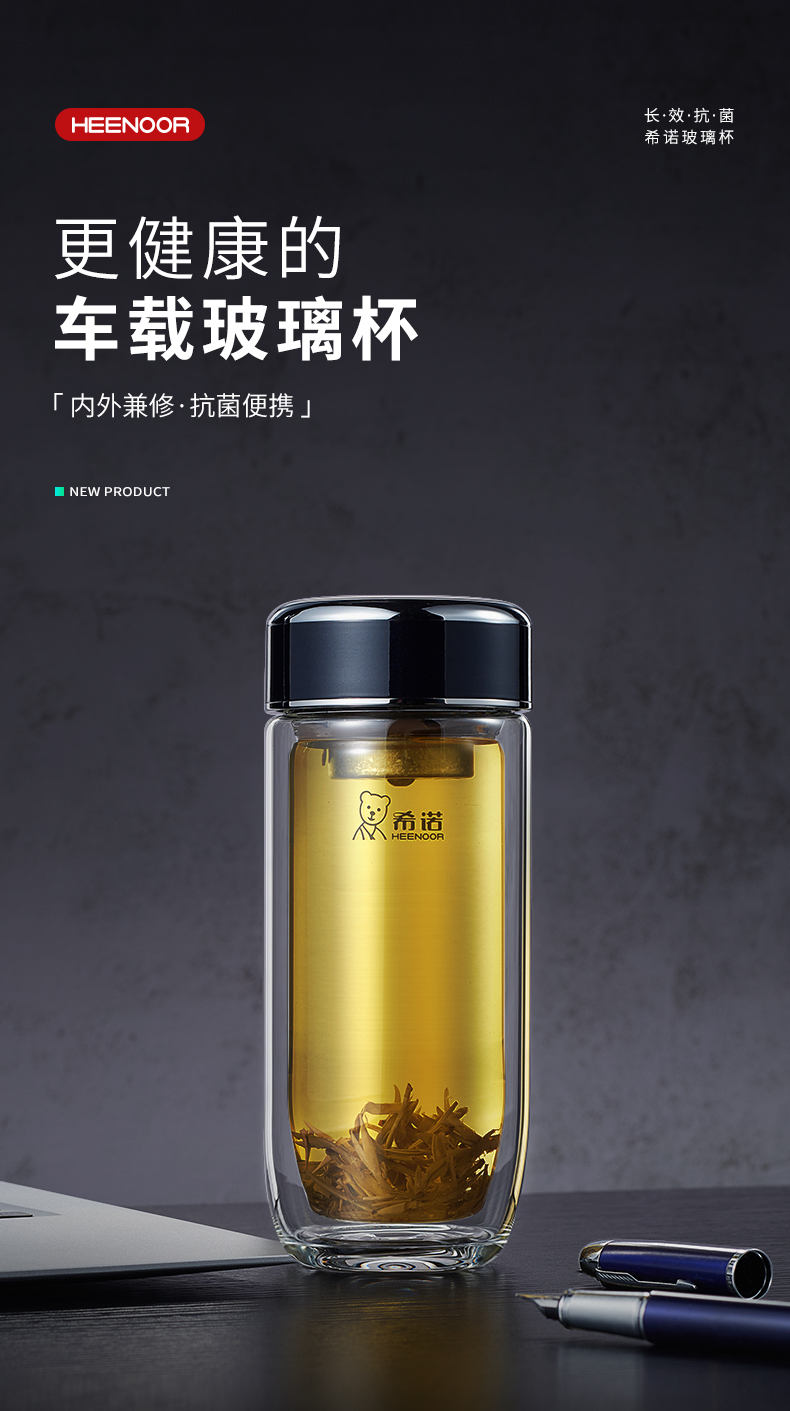 希諾雙層抗菌玻璃杯隔熱男女士高檔車載水杯便攜杯子帶濾網茶杯