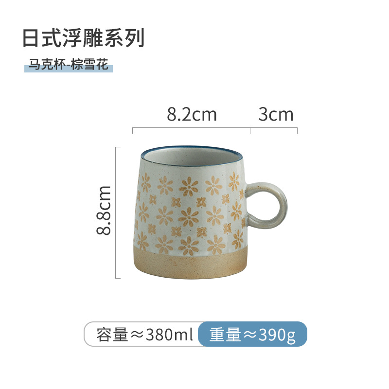 華孚復(fù)古咖啡杯陶瓷杯日式田園茶杯水杯浮雕粗陶馬克杯情侶杯送禮
