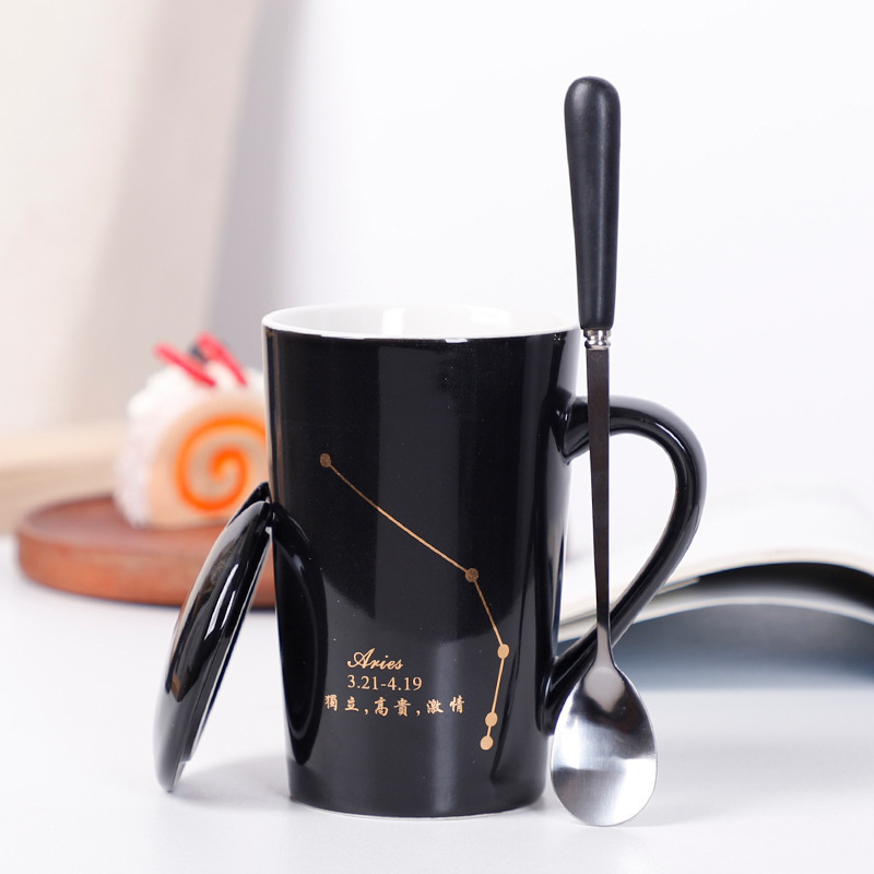 創意十二星座新骨瓷真金 馬克杯可制作陶瓷杯禮盒套裝學生水杯